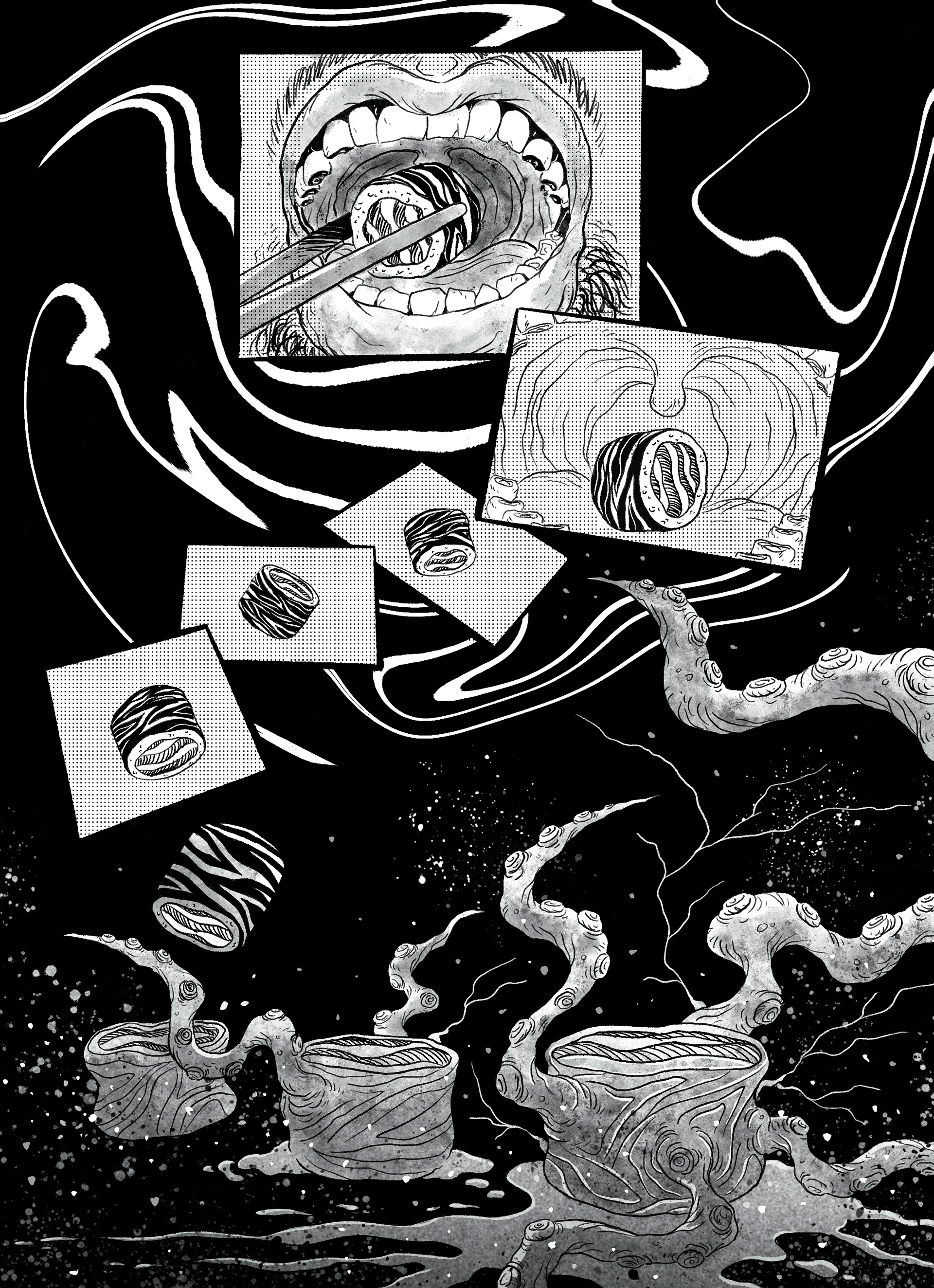 Body horror short comic written and illustrated for the Brazilian anthology Revista Pé de Cabra.
